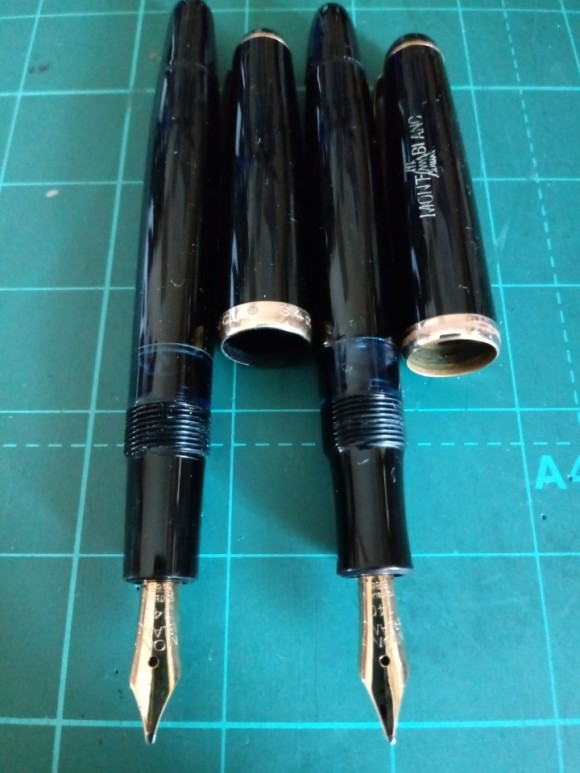 좌측은 후기형, 우측이 초기형이다. 일단 외관을 봤을 때 캡의 몽블랑 인그레이빙 유무가 큰 특징이다. 일반적으로 50년대 이전의 몽블랑에서 캡면에 로고가 각인된 모델을 흔히 접할 수 있다. 노브 끝의 엔드라인 처리도 구분된다.