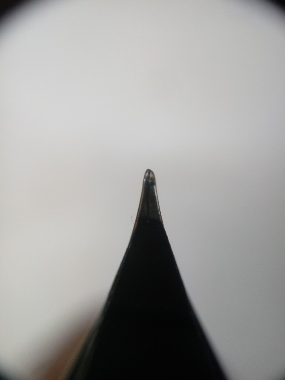펜촉 단차로 인해 양측 슬릿의 길이가 달라졌고 어긋나버려 잉크가 슬릿을 따라서 충분히 내려오지 못해 헛발질, 거친 필감을 보여주는 펜입니다. 일단 최초 분해 단계에서 부터 내부에 방수실리콘이 뜯겨져 나간 흔적이 있는 것으로 보아 분해된 이력이 있는 펜입니다. 또한 단차가 필기시 발생하는 단차가 아닌 강한 충격으로 인해 생긴 양상을 보여주네요.