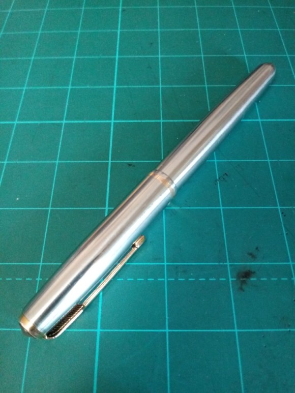 지금까지 특징들에 대한 리뷰를 해봤으면 이젠 직접 실물을 영접한 개인의 리뷰를 작성해보겠다. 일단 나는 파카51에 대한 흥미가 크지 않은 컬렉터이며 후드닙은 불호인 성향을 갖고있다. 하지만 51 플라이터는 후드닙이 잘 어울린다. 후드닙이 아니면 오히려 어색할 것 같은 펜이다. 클립과 캡 밴드에 금장 처리된 부분은 심심할 수 있던 디자인에 포인트를 주었는데 신의 한수가 아닐까 싶을 정도로 잘 어울린다. 배럴의 바텀 부분은 다른 모델들과는 다르게 뭉툭하지 않게 처리되었는데 이 역시 세련됨을 상승 시켜주는 요인으로 작용한다. 캡을 닫았을 때의 각인은 캡의 PARKER 인그레이빙밖에 보이지 않는 것도 심플하면서도 묵직하게 느껴진다. 다른 오래 사용된 개체들을 보면 스텐 재질이다 보니 스텐끼리의 마찰로 인해 캡이 닫히는 부분, 배럴 뒷면에 꽂히는 부분에는 스크래치가 생기는데 이는 메탈 시계를 착용해도 불가피하게 발생하는 부분이라 크게 신경 쓰이지는 않는다. 리뷰하고 있는 개체는 NOS급이라 스크래치가 하나도 없어서 도저히 캡을 뒤에 꽂은 사진은 찍기 힘든 점 양해 바란다.