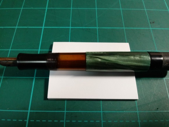 캡과 그립, 노브 부위는 하드러버 재질이 사용되었다. 하드러버 특유의 쿰쿰한 향기는 빈티지 향수를 불러 일으킨다. 호박색 잉크창 역시 부드러운 분위기를 연출하고 금색 원톤 14k 펜촉도 너무 튀지 않게 잘 녹아든다. 펜촉은 스트레이트 형태의 가공으로 스프링 연성 펜촉처럼 서예를 하듯 필기가 가능하다. 이런 연성 펜촉을 감당하기 위해 에보나이트 피드가 장착되고 피드 구조는 심플하여 아주 풍부한 잉크흐름으로 공급해준다.