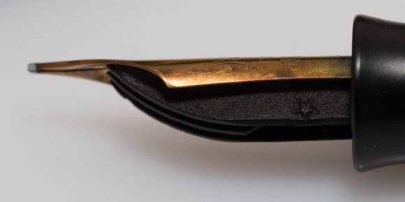 적당한 탄성감은 느끼면서 티핑쪽의 슬릿은 벌어짐이 적어 일정한 두께로 필기가 가능하다. 상태가 좋지 않거나 오래된 펜은 슬릿이 고정되지 않는 모습을 확인 할 수 있다.