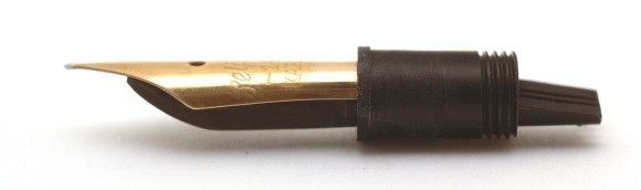 위 두 사진이 100 시리즈다. 아래 사진은 100N에 사용되는 펜촉이다. 확실히 티핑쪽으로 가면서 아래쪽으로 구부러지는 모습이다. 오래된 펜은 이런 벤딩 닙이라도 금속 피로도로 인해 닙이 굉장히 낭창거리며 필압을 더 주면 슬릿이 벌어진다. NOS급을 써보면 알겠지만 벤딩닙은 스프링 필감을 의도한게 아니라는걸 알 수 있다.