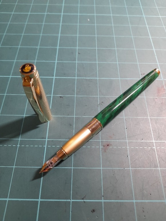 그립부는 손으로 쥐는 부분은 매트하게 처리하여 미끄럼 방지를 해주었는데 펜촉이 짧아서 길게 쥐고 쓰게되어 별 효과는 없었다. 잉크 충전방식은 카트리지와 컨버터를 사용하는데 펜 무게가 생각보다 묵직하다. 개인적으로 펜이 무거워지면 펜촉의 자극이 현저히 줄어드는 점이 아쉬운데 해당 모델은 경성에 길들일 필요 없이 티핑이 가공되어 있어 필압 없이 펜의 무게만으로 부드럽고 편안하게 쓸 수 있는 장점이 있다. 빈티지에 데인 사람들이 길들이는 과정을 즐기지 못하고 현행만 쓰게되는 가장 큰 이유가 이 부분 때문이 아닐까 싶기도 하다. 연필도 처음 날카롭게 깎으면 끝 심이 부러지고 거친 필감이다가 점차 부드러워지며 기분 좋은 사각거림을 주는 것 처럼 만년필도 마찬가지다. 가죽 신발도 처음 신었을 땐 굉장히 딱딱하고 뒷꿈치가 까지기도 하지만 부드럽게 길들여지면 그 어떤 신발보다 편안한 착용감을 선사해준다. 그 길들여지는 시점이 올드펜들은 조금 오래 걸리는데 그 시점을 넘겨본 사람은 빈티지만 쓰게된다. 물론 처음부터 부드럽고 시원한 흐름을 준다는건 마감 품질이 그만큼 높아졌다는 관점으로 볼 수 있다.