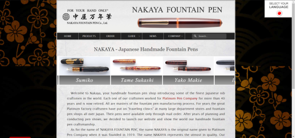 나카야 만년필 웹사이트에 처음 접속하면 일본어, 영어 사이트 선택이 가능한데 해외에서도 나카야 만년필을 꽤나 주문한다고 한다. 다만 내가 아는 해외컬렉터들 중 나카야를 구매한 이는 그리 많지 않다. 아무래도 필각을 특히 타는 아시아권 문자에 적합해서가 아닐까 싶은 부분이다.