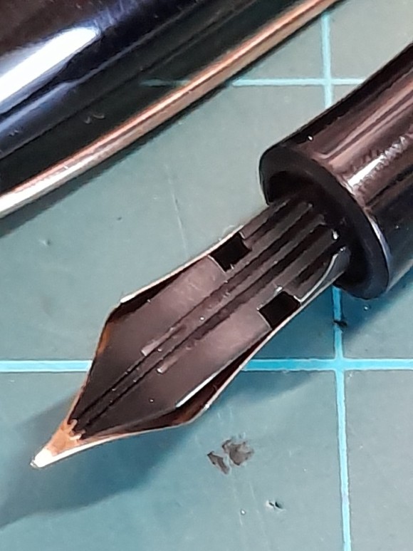 펜촉은 분해흔적이 있고 하우징 결합이 느슨해져 있었다. 노브 각인은 KM닙이나 현재 장착된 펜촉은 F닙. 사실 당시엔 매장에서도 펜촉을 간단하게 교체해주었기에 무시해도 되는 부분이다. 오늘날도 몽블랑 현행을 구매하면 한달 이내 무상으로 펜촉을 다른 사이즈로 교체해주는 서비스를 제공하고 있다. 다만 매장에서 자체 수리가 어려워 센터에 보내야 하므로 시간이 꽤나 걸린다.