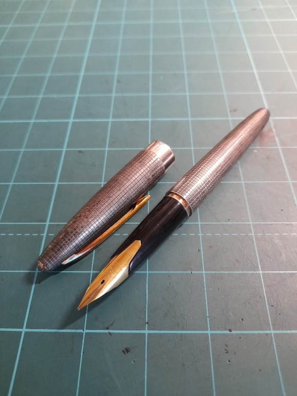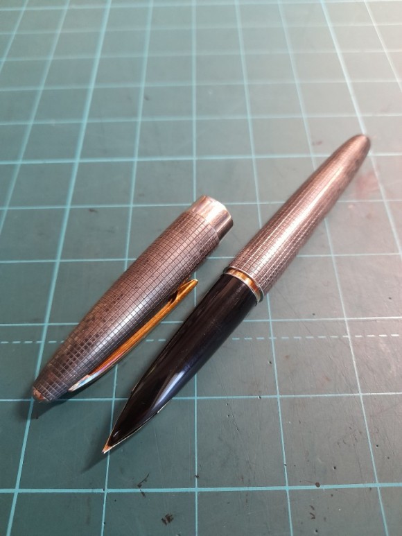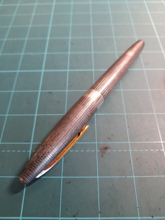 도금된 클립의 장력은 스프링 타입 치고는 상당히 강한 편이다. 캡 밴드가 구형은 더 두껍다. 밴드에는 STERLING SILVER 각인이 새겨진다. 스털링 실버 재질의 만년필 관리 방법을 한가지 알려준다면 다음과 같다. 간혹 은 폴리셔로 마구 닦아버리는데 이런 펜의 매력은 체크 무늬의 라인이 선명하게 남아있는게 포인트다. 간혹 파카 75 등을 보면 소네트 치즐 모델처럼 진한 검정 라인이 있는게 아니라 다 지워져 체크가 사라진 개체를 볼 수 있다. 시르반도 마찬가지. 체크무늬의 라인에 채워진 부분까지 은세척제가 지우지 않도록 주의하는게 좋다.