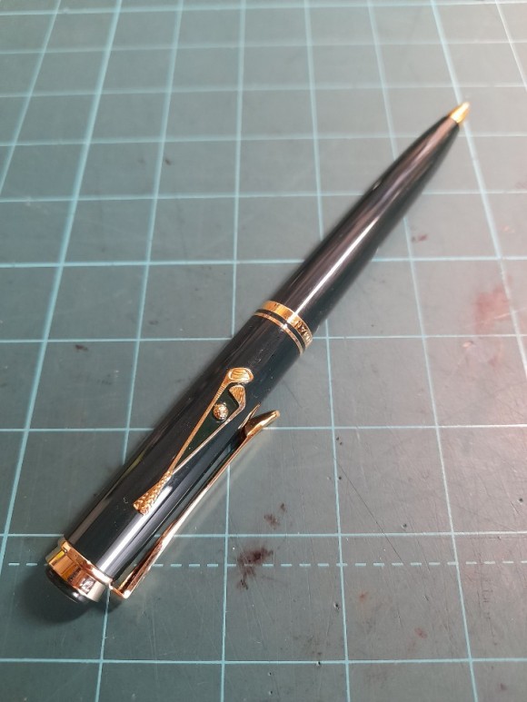 사실 볼펜은 클립 때문에 만년필에서 느꼈던 감동은 없었다. 그냥 D800 볼펜에 골프채 박히고 색감이 짙은 녹색으로 바뀐 정도. 명품 볼펜 중 국내에서 가장 많이 팔리는 몽블랑 164 볼펜의 메커니즘과는 다른데 까르띠에 볼펜의 메커니즘과 유사하다. 묵직하게 스핀하고 볼펜심은 국제호환 규격 사용된다. 탑 부분의 옆면에는 한정판 넘버링이 새겨지고 로고는 96년도 한정판이라 2마리 새끼가 그려져있다.