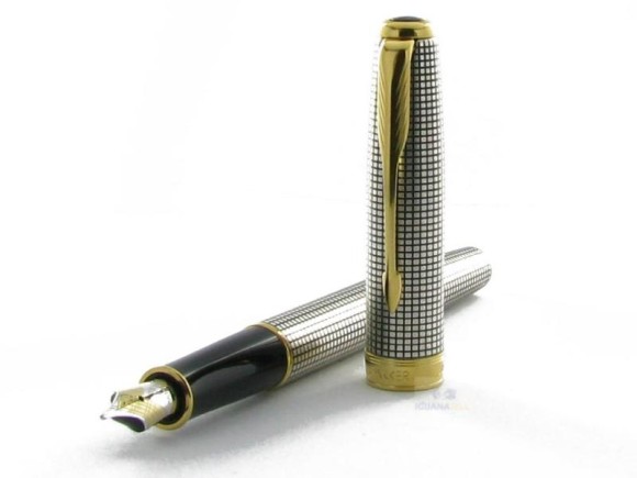 파카 소네트 스털링 실버 치즐 순은체크 만년필.