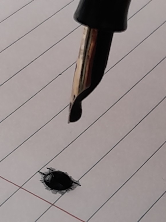 잉크를 주입하고 펜촉을 아래 방향으로 숙이면 잉크를 잡아주지 못하고 한방울씩 떨어지는 현상 발생.
