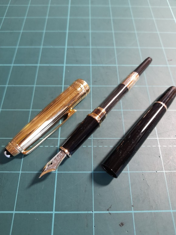 펜 컨디션은 주기적으로 세척을 해주지 않은 것으로 보여지는데 내부에 잉크가 굉장히 고착되어 있었다. 배럴부 나사산은 잉크가 심하게 고착하여 거의 착색이 되어버린 수준. 144 중에서도 연식이 가장 나중의 버전으로 보여지는데 관리가 필요해보인다. 만년필은 여타 필기구들과 달리 주기적인 세척이 중요하다. 굳이 잉크를 바꿔서 주입할 때 마다 세척을 해주지 않더라도 최소 한달에 한번씩은 세척해주길 권장한다.