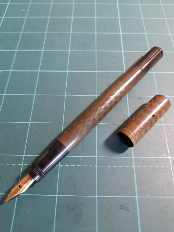 역시 메이저 브랜드답게 세이프티 작동시 펜촉이 회전하며 배출되는 것이 아닌 고정형 메커니즘으로 안정적이다. 풀 플렉시블 닙이라 미세한 단차가 쉽게 발생하는데 너무 타이트하게 조정할 필요는 없다. 어느정도 적당한 선에서 단차 잡아주면 된다. 하드러버 재질이라 변색이 심한 상태지만 이를 못참고 폴리싱을 해버리면 배럴의 음각이 날라가버리니 주의하자.