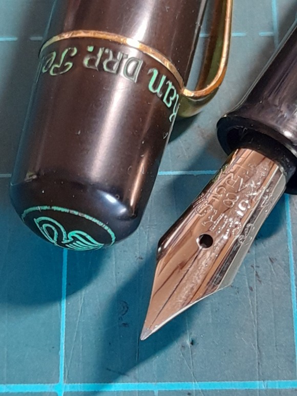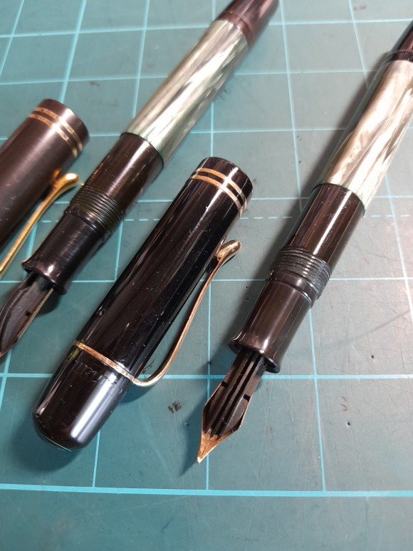 100N 초기형의 펜촉은 100 닙에 비해 크기는 커졌으나 티핑의 가공, 닙 형태의 마감 등은 100의 것과 상당히 유사하여 필감 자체는 100 필감에 가까운 특징을 갖는다. 100은 조금 덜 다듬어진 듯한 필감이 100N과 다르다. 한가지 놓쳤는데 셀룰로이드 버전은 그립부 접합 가공이 초기형과 같지만 극초기형은 그립부는 하드러버, 배럴은 셀룰로이드로 두 파츠가 결합 분해가 가능하지만 셀룰로이드 버전은 일체형이라 분해가 불가능하다. 극초기형의 경우 결합시 셸락 등 방수처리가 필요하다. 100N 극초기형은 소개된지 얼마되지 않고 2차 세계대전이 발발하여 팔라듐 닙으로 교체되고 이후 금촉 버전은 바로 셀룰로이드 버전으로 넘어가게 되므로 사료가 많지 않다. 이번 중요한 사료를 통하여 극초기형 100N을 정리할 수 있기를 바란다.