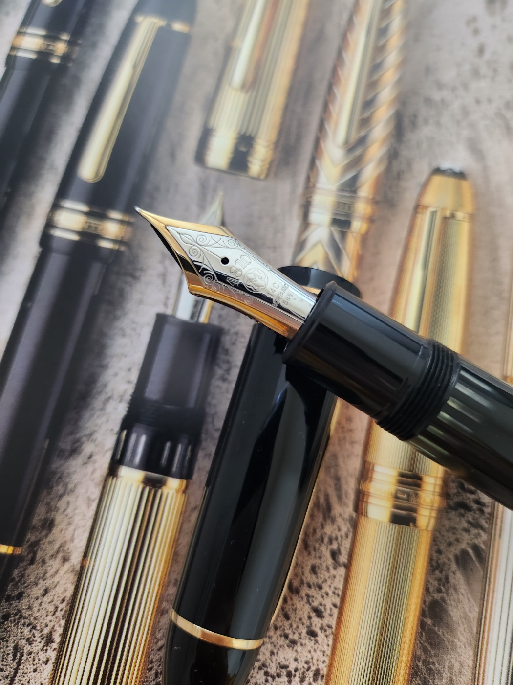 단순히 70년대는 이러이러하다 이렇게 정리하기엔 세분화된 특징들이 많고 그 미묘한 차이 때문에 필감도 달라져서 명확히 구분지을 필요가 있다. 일반적으로 70년대 149라고 하면 투톤에 14c닙에 황동 필러 스레드, 솔리드 에보나이트 피드 정도로 보는데 70년대 초반과 후반 특징이 생각보다 크게 달라서 구분할 줄 알아야 한다. 70년대 초반의 경우 닙 디자인은 쓰리톤으로 되어있고 60년대 후반의 닙 쉐잎인 내로우 숄더 형태의 닙들이 장착된다. 이후 와이드 숄더 형태로 바뀌며 와이드 숄더로도 쓰리톤이 잠시 유지되다가 투톤으로 바뀐다. 닙의 금 함량은 14c, 18c 두가지가 항상 동시대 장착되며 연식별 구분되는 특징이 아니다. 닙의 쉐잎이 다르다고 연성도 자체는 다르진 않지만 연성감이 달라지는데 내로우 숄더 형태가 좀 더 부드럽게 낭창거리고 와이드 숄더는 가볍게 낭창거리는 느낌을 받는다. 보여지듯이 닙의 tine이 넓으면 그만큼 스프링감이 두터우며 tine이 좁으면 가볍게 느껴지는 것이다. 슬릿이 벌어지는 정도, 연성도 자체는 비슷한 수준이다. 60년대 중반까지 확인되는 벤딩닙은 70년대에서 확인되지 않는다. 벤딩닙이라는 명칭도 필자가 정의한 것인데 다른 사람이 써놓은 글을 볼때면 신기할 따름이다. 유래는 본래 영문상 bent nib이 맞지만 한글표기시 벤트홀 vent hole과 벤트가 겹쳐 bending으로 명명한 것이다. 60년대 초중반 닙의 tine이 앞으로 굽어져 있는 형태를 말한다. 다음 포스팅에선 70년대 초반 쓰리톤 개체를 살펴보도록 하겠다.