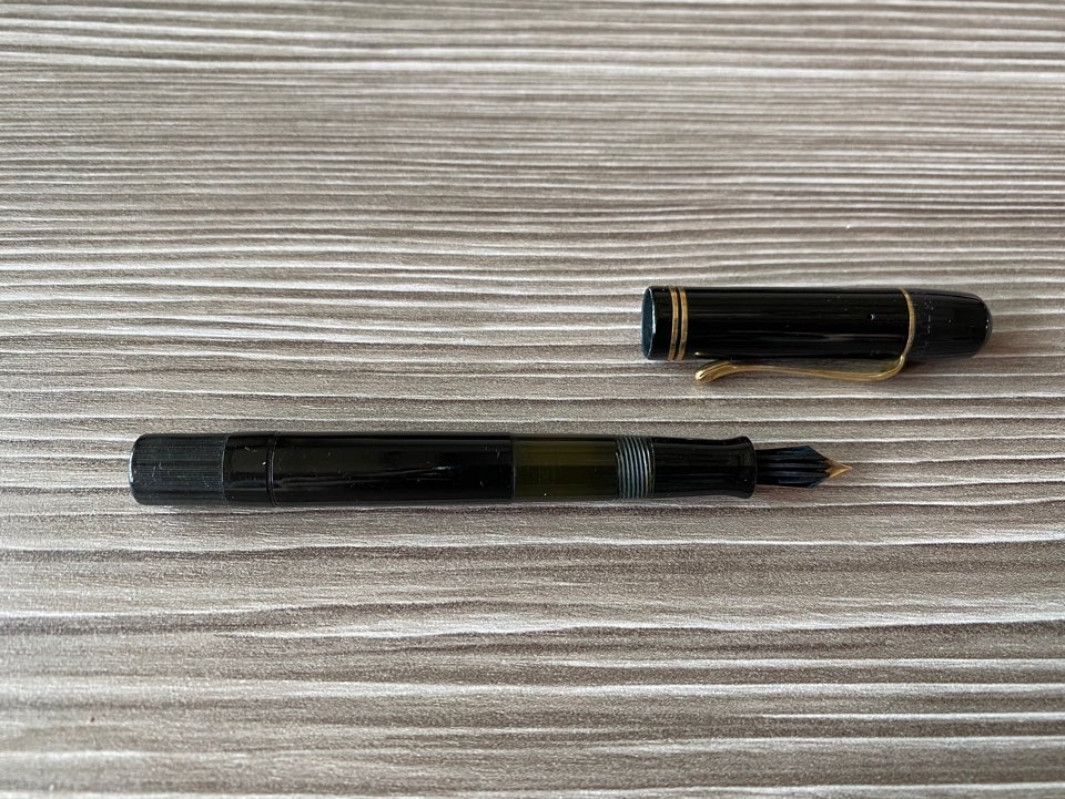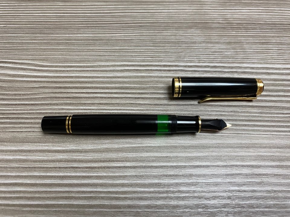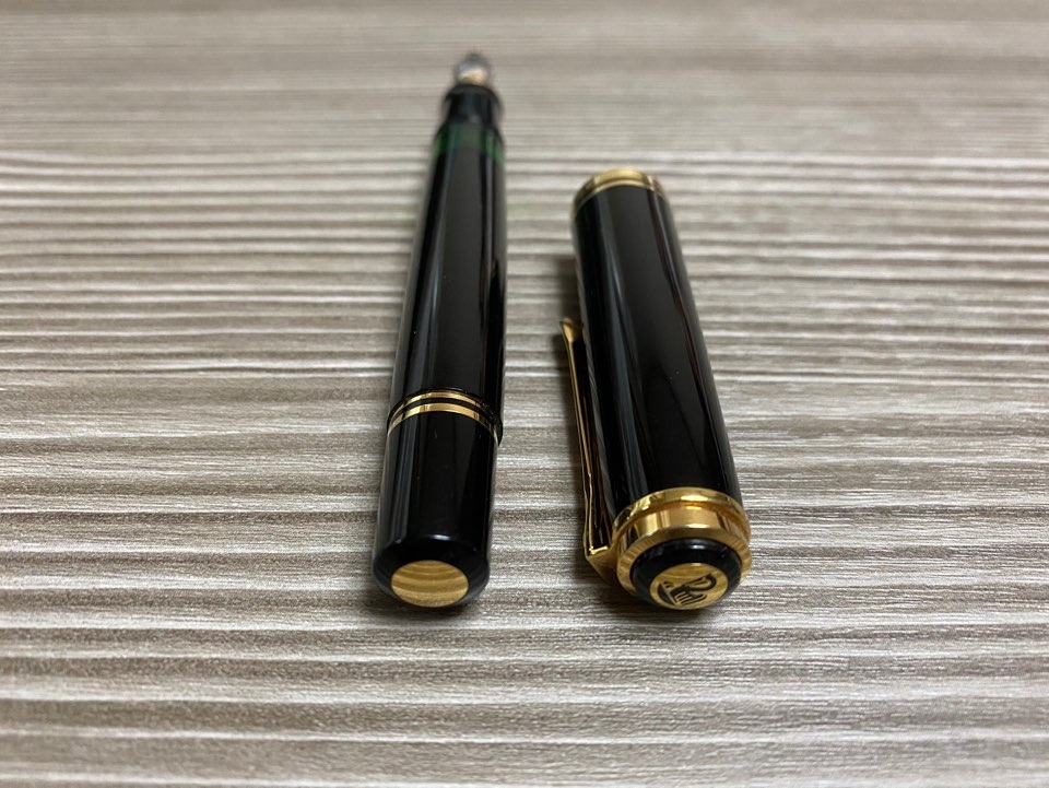 빈티지와 현행 스타일이 너무 상극이라 비교 자체가 어렵고 100과 100N을 비교하는게 차라리 나은데 두 펜이 큰 차이가 없어 보이지만 막상 손에 쥐어보고 실물을 본다면 확실히 다른 펜이라는 것을 느끼게 된다. 일단 100은 노브부분이 플랫한 디자인이고 100N은 노브도 곡선을 그린다. 100의 노브엔 후기형을 제외하곤 세로선도 그어지는데 이 디자인이 굉장히 클래식함을 유발한다. 거기에 재질 자체가 다른데 100은 대부분 하드러버재질로 제작되고 100N 부터는 셀룰로이드 재질로 제작된다. 재질 자체가 다르면 전반적으로 풍기는 분위기부터 달라진다. 사진으로는 담아내기가 어려운데 제품들의 온도감은 100>100N>m800 순서로 따듯함이 느껴진다. 100, 100N 모두 캡을 뒤에 꽂아 사용 가능한 범주의 밸런스를 보여주지만 캡을 끼우지 않고 쓸 때의 느낌이 더 극대화된다. 손에 쥐었을 때는 두 펜 모두 현행 200, 400의 두께감, 길이감이 비슷하지만 100이 조금 더 작은 편이다. 필기시 안정감을 생각한다면 개인적으로 100N이 더 손에 감기는 느낌이다.