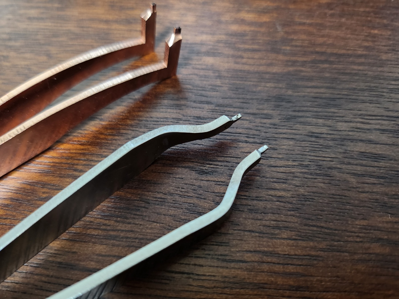 먼저 닙을 분해하는 방법은 다양하다. 펠리칸처럼 따로 전용 툴이 없이 손으로 분해하는 방법도 있고 파커처럼 헝겊을 펜촉에 쥐고 강하게 잡아 뽑기만 해도 되는 경우도 있다. 몽블랑처럼 전용 툴이 필요한 경우도 있는데 전용 툴을 쓰게되면 난이도가 높다고 생각하지만 오히려 맨손으로 분해하는 방식보다 전용 툴로 분해하는게 가장 안전하다. 맨손으로 분해하는 경우엔 피드 comb가 눌릴 수도 있고 부러질 수도 있다. 특히나 펠리칸 빈티지 경우 에보나이트 재질인데 comb 까지 있어 맨손으로 돌려 열다가 부러트리는 경우가 다반사다. 차라리 전용툴로 파손 우려 없이 안전하게 분해하는게 속 편하다. 몽블랑 툴들은 다양한데 크게 두가지로 나뉜다. 먼저 핀셋처럼 생긴 타입과 고정형 타입이다. 핀셋 타입은 툴 하나로 9호 6호 모두 분해가 가능하다. 이는 핀셋 방식으로 지름 조절을 직접 하여 규격에 맞게 조절이 가능하기 때문인데 이 툴은 몇번 쓰다보면 굉장히 물러지게 된다. 물러지면 닙파츠가 타이트하게 결합된 개체의 경우 분해하다가 빠지게 된다. 빠지면서 스크래치를 유발하게 되는데 빈티지 개체들 중 닙 파츠 홈 주위에 스크래치가 많이 나있는 것들이 이러한 케이스다.