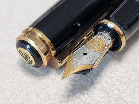 현행과 직접 두자루를 두고 비교하면 더욱 명확한데 현행은 마치 쇼바 없는 단단하고 묵직한 느낌의 필감이지만 빈티지는 스프링 서스펜션이 들어가 탄성감을 즐길 수 있는 느낌이다. 당시의 펠리칸은 슬릿이 굉장히 닫혀있는데 NOS 상태에서의 개체들은 슬릿을 열어주는 작업, 즉, 길들이기 작업이 필요하다. 필압 없이 쓰면 잉크 흐름이 절제되어 일제 EF 수준으로 그어지지만 필압을 주면 슬릿이 자연스럽게 벌어지며 풍부한 흐름을 보여준다. 사용함에 따라 슬릿은 벌어지고 점차 흐름이 트이게 된다. 현행 마감은 애초부터 슬릿을 열어 제작해 길들이는 작업이 필요 없이 잉크가 흘러나온다. 14c, pf 모든 개체들의 NOS급 특징들이었고 확실히 최초 잉크 흐름은 절제된 느낌이 강하다. 모든 빈티지 만년필들이 그러하고 이로인해 필압으로 단순한 획 두께만이 아닌 잉크 흐름까지 조절이 가능하게 된다. 슬릿이 애초부터 열려있으면 최소 잉크 흐름량 조절은 불가능하다.