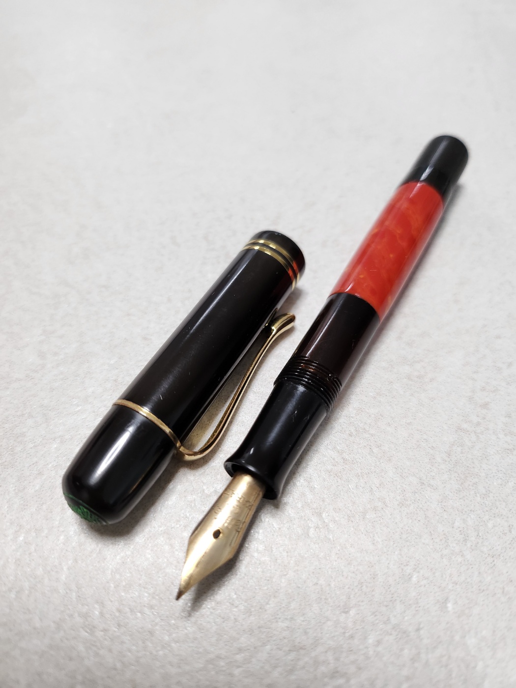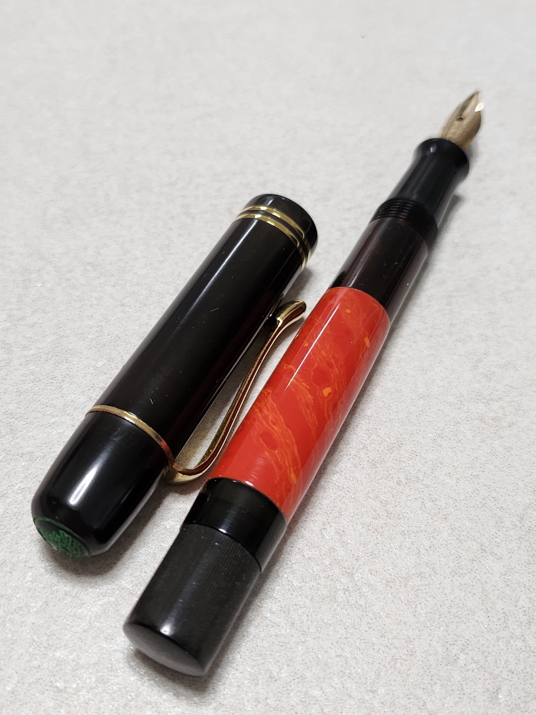 코랄 레드 패턴은 멀리서 언뜻 보면 헤밍웨이처럼 일반 주황색 배럴로 보이지만 가까이서 보면 대리석 질감이 느껴져 독특하고 고급스러움을 느낄 수 있다. 코랄 패턴 역시 개체마다 모두 다르고 내구성도 괜찮은 편이다. 내구성은 리자드가 가장 낮은데 직접 만져보면 잘 깨질 것 같은 질감이다. 블루, 레드 펠리칸 중 레드의 개체수가 더 적고 적은만큼 시세도 높다. 블루는 비교적 시세가 낮고 개체수도 종종 보였으나 해가 지날수록 구하기가 어려운건 마찬가지다. 펠리칸 100도 출시일이 1929년이니 4년만 더 있으면 100년이다. 소장중인 만년필 중 일부 모델들의 연식이 100년을 채워가고 있는데 100년을 채운 펜들을 보면 감회가 새롭고 경외심이 들 정도다. 요즘 세상에 물건 하나 10년, 아니 5년 쓰기도 힘든데 100년이란 세월을 견디고 버텨 지금도 쓸 수 있는 물건을 만들던 그 시절은 도대체 무슨 일이 있었던걸까. 참고로 위의 모델은 1930년대 초반의 것으로 90년 된 만년필이다. 그 누가 저 만년필을 90년이 된 것으로 볼까 싶다.