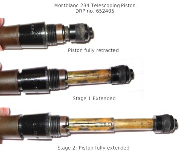 또한 만년필의 큰 재미 중 하나인 잉크주입 하는 과정이 피스톤 필러의 두배정도 시간이 소요된다. 일반 피스톤 필러는 로드 하나에 대해서만 노브를 돌려주면 되지만 위 사진처럼 텔레스코픽 필러는 2단계로 이루어지기에 상당히 많은 회전수가 필요하다. 피스톤이 내려오는지 모르고 계속 돌리다가 고장이 아닌가 싶어 오버 와인딩을 하게되어 일어나는 고장이 상당히 많다. 씰은 코르크씰이 장착되며 분해는 전용 툴이 필요하다.