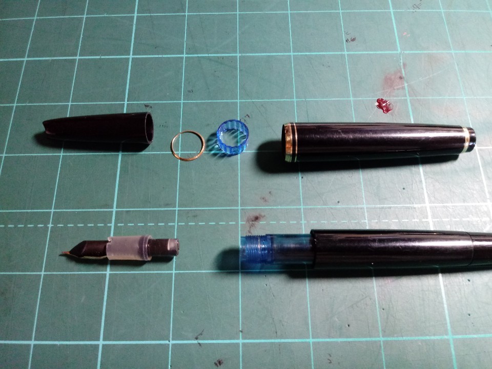 두번째는 피스톤 필러 수리입니다. 내부 나사산 이탈 및 오일의 건조로 작동이 원활하지 않았습니다. 분해 및 재결합, 즉 오버홀 해주면서 오일을 도포해주면 끝납니다. 추가적으로 결합 불량이던 파츠들은 재결합하면서 순서에 맞게 다시 조립해줍니다. 특히 그립부는 잉크 누수가 발생하지 않게 각 파츠에 방수 처리를 해주며 결합해주는게 중요합니다. 그냥 분해한 뒤 아무런 조치 없이 재결합하면 파츠 틈 사이로 누수가 발생합니다.